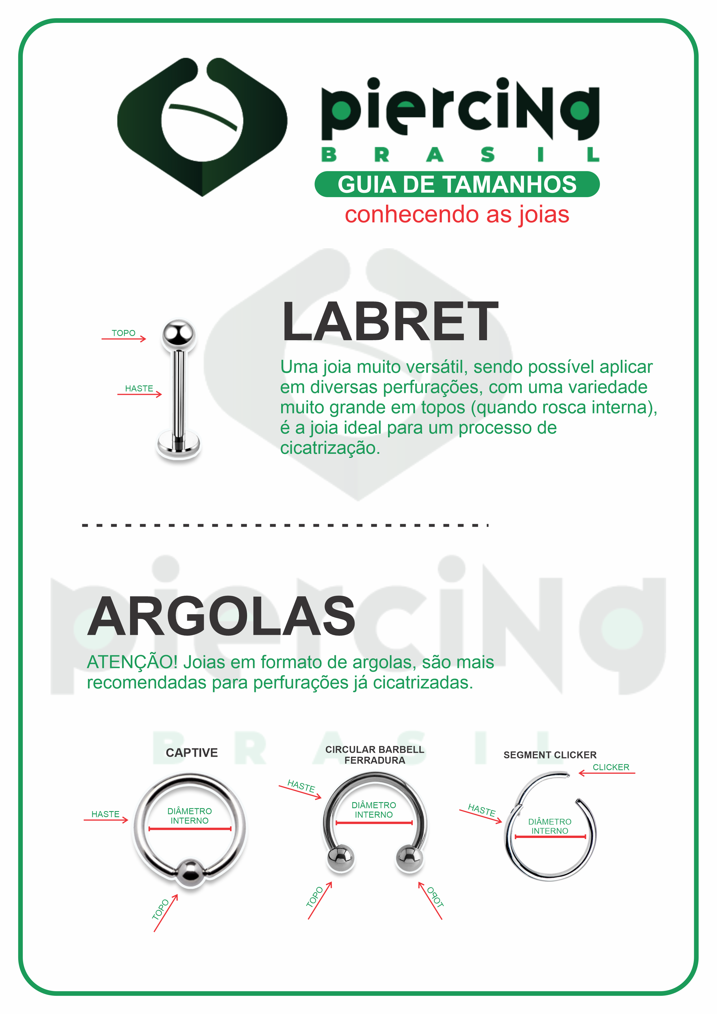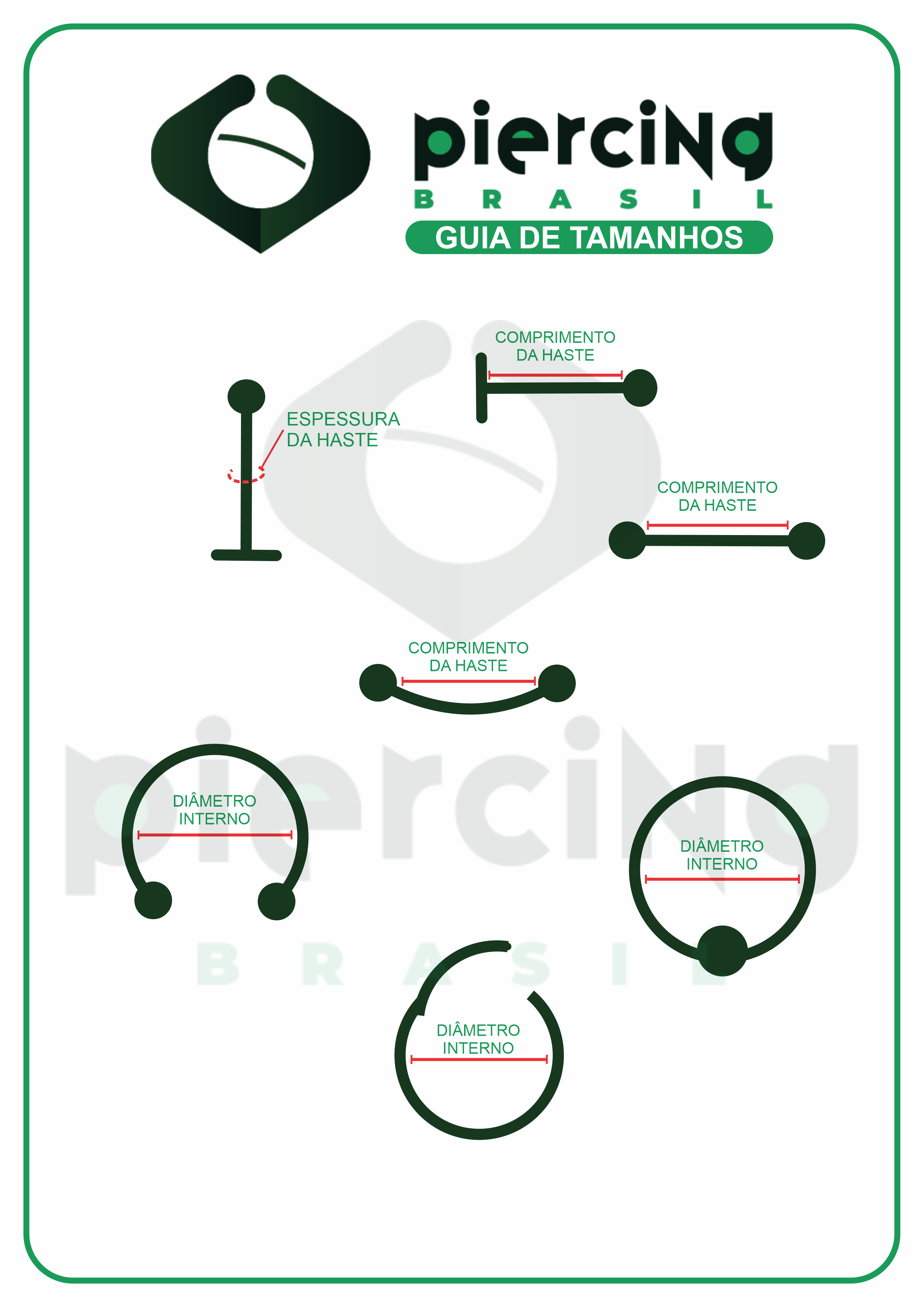 A Piercing Brasil ressalta que a escolha do produto é de responsabilidade do cliente, considerando que as medidas podem variar conforme a anatomia de cada pessoa e o local da perfuração.